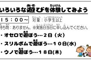 岩野田児童センター 小学生対象 『いろいろな遊びを体験してみよう!』オセロで遊ぼう!