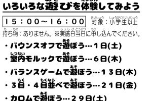 岩野田児童センター 小学生対象 『いろいろな遊びを体験してみよう!』バランスゲームで遊ぼう!