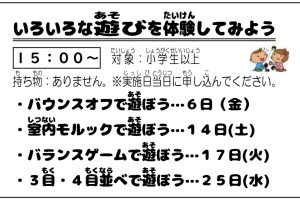 岩野田児童センター 小学生対象 『いろいろな遊びを体験してみよう!』バウンスオフで遊ぼう!